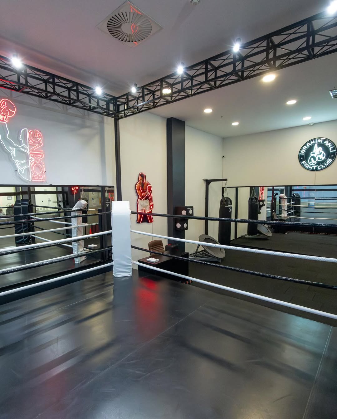 Profesyonel ring, kum torbaları ve dayanıklı antrenman ekipmanlarıyla gerçek boks atmosferini yaşarsınız.